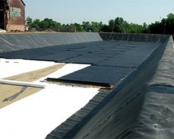 Конструкция из Геомембраны ПВД зарекомендовала себя в качестве гидроизоляционного экрана для предотвращения потери воды на фильтрацию. Полотнище геомембраны укладывают на хорошо спланированное ложе и сваривают внахлест. Края геомембраны заводятся в траншею, расположенную на бровке котлована.